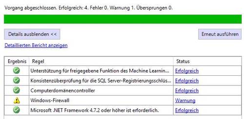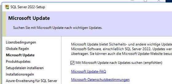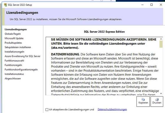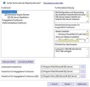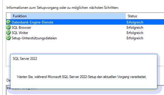 Hier die Betätigung, daß wir die SQL Engine als Dienst installieren