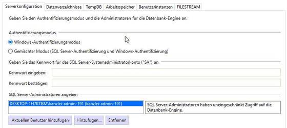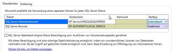 Der MS-SQL-Express Server soll unter Win-10 als Dienst installiert werden.