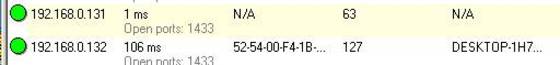 In dem Prüfprogramm "angry ip scanner" habe ich explizit den Standard MS-SQL Express Port 1433 abgefragt, denn nur der interessiert uns zur Zeit.