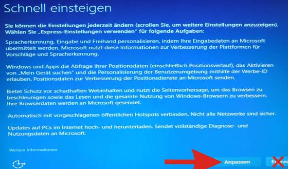 Hier kommen die Screen-Fotos während einer ganz normalen Win10 Installation mit aussagekräftigen Bildschirmfotos. Es sind keine eben Screen-Shots, denn manche Meldungen kommen schnell und verschwinden schnell wieder.