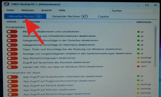 Es gibt den Bereich "Aktueller Nutzer" und es gibt neben dran den Bereich "Gesamter Rechner". Unbedingt beide Bereiche prüfen und korrigieren.