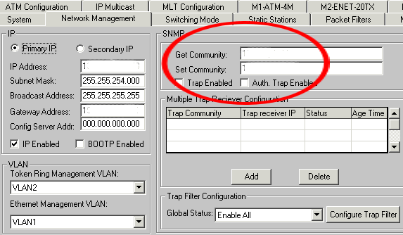 Zuerst muß der Switch erlauben, daß ankommende SNMP (Angfrage-) Pakete vom Switch überhaupt beantwortet werden. Bei den meisten Switches sind die integrierten SNMP Agenten aktiviert und die wichtigsten "Passwörter" sind in der Regel "public" (das steht unter GET Community für die Abfrage) und "private" (SET Community für die Konfiguration). Diese primitiven "Passwörter" sollten Sie sowieso schnellstens austauschen. Und sicher ist das eigentlich auch nicht.