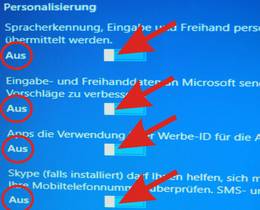 Diese Einstellungen sind alle mit "EIN" vorbelegt und sollten alle auf "AUS" gesetzt werden